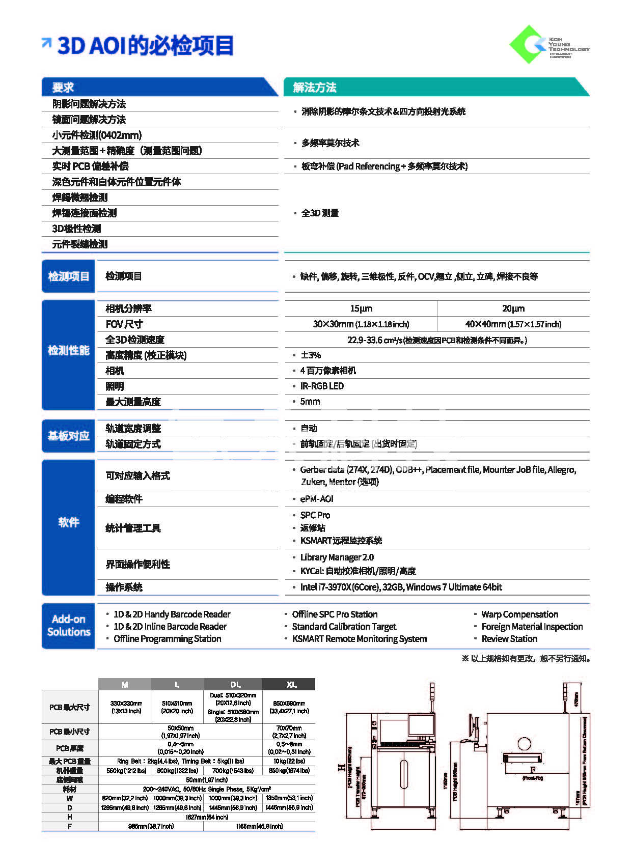 品牌:KOH YOUNG LiTE 3D AOI 性能特點(diǎn): 全3D AOI,克服二維檢測的缺點(diǎn) 使用4光源投影和多頻率摩爾專利技術(shù)解決陰影 高精度3D焊點(diǎn)檢測