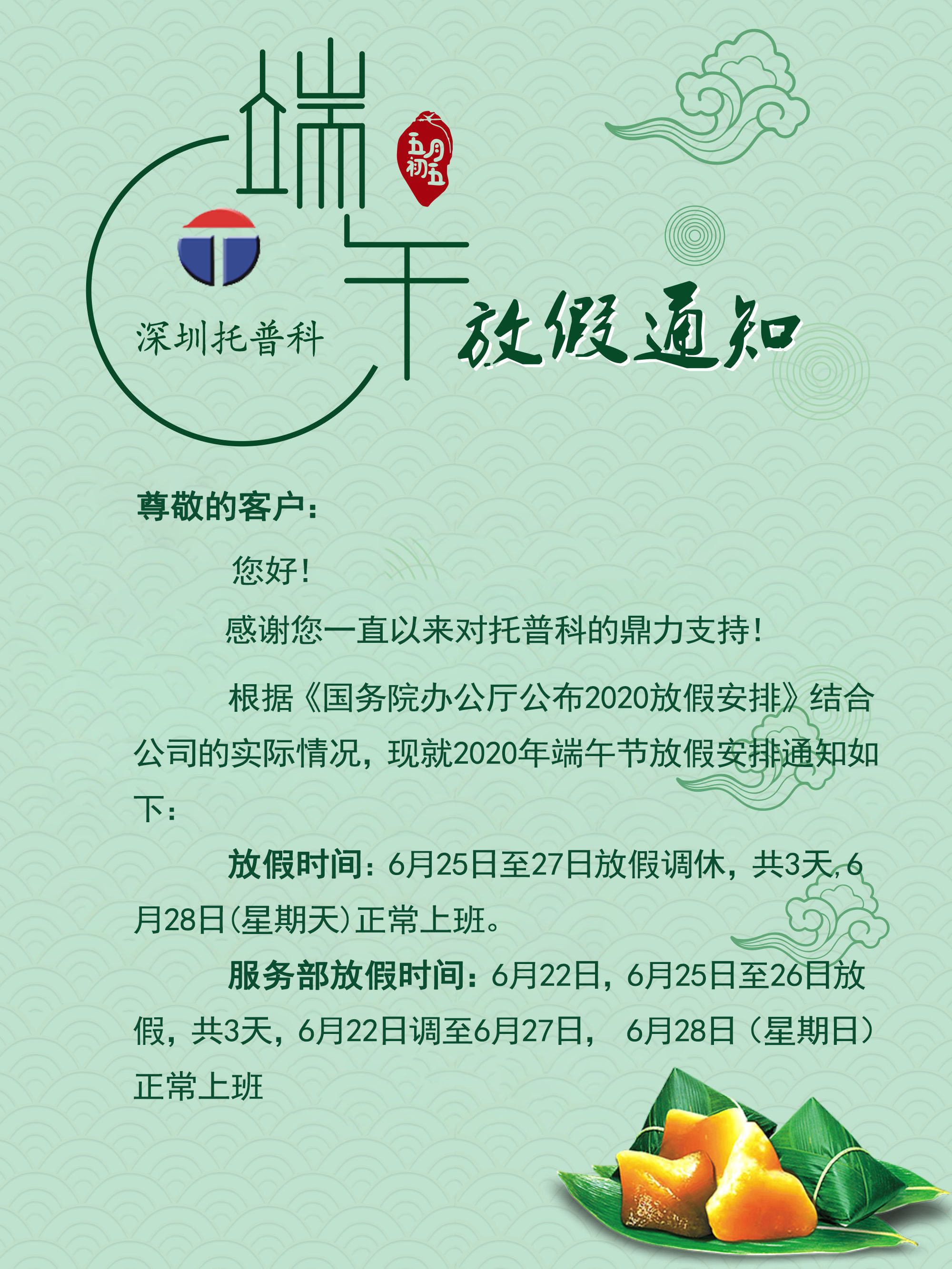 端午節(jié)將至,根據(jù)《國(guó)務(wù)院辦公廳公布2020放假安排》,結(jié)合公司的實(shí)際情況,就2020年端午節(jié)放假安排通知如下: